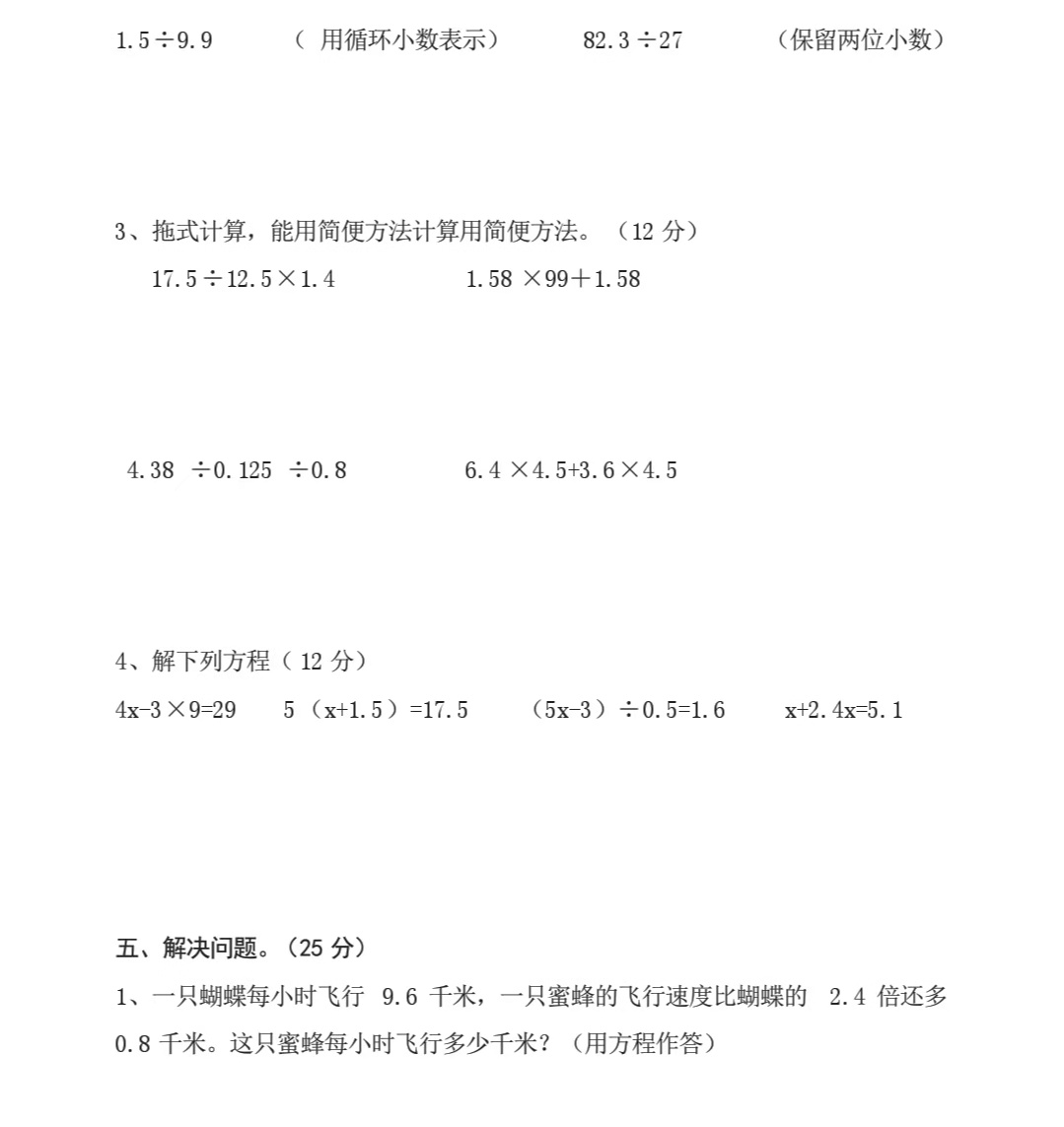 奥数 > 小学试题库 > 期中试题 > 期中数学 > 五年级数学期中上册 > 正文