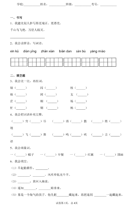 奥数 > 小学试题库 > 期末试题 > 语文期末试题 > 二年级语文期末上册 > 正文