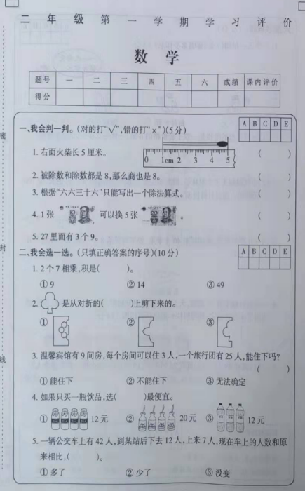 奥数网整理了关于2022年北师大版二年级上册数学期末测试卷七(图片版),希望对同学们有所帮助,仅供参考。