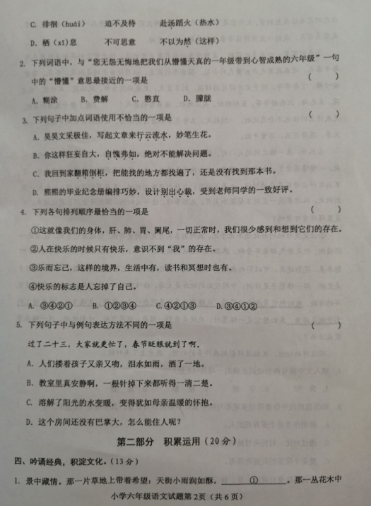 奥数 > 小学试题库 > 期末试题 > 语文期末试题 > 六年级语文期末下册 > 正文