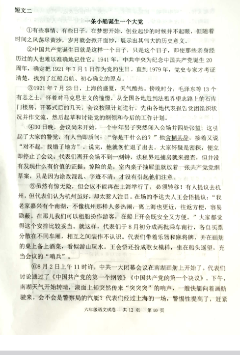 2023山东潍坊昌乐县六年级下册语文期末试卷(图片版)(10)