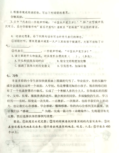 点击查看万博体育app::六年级语文下册期末试题